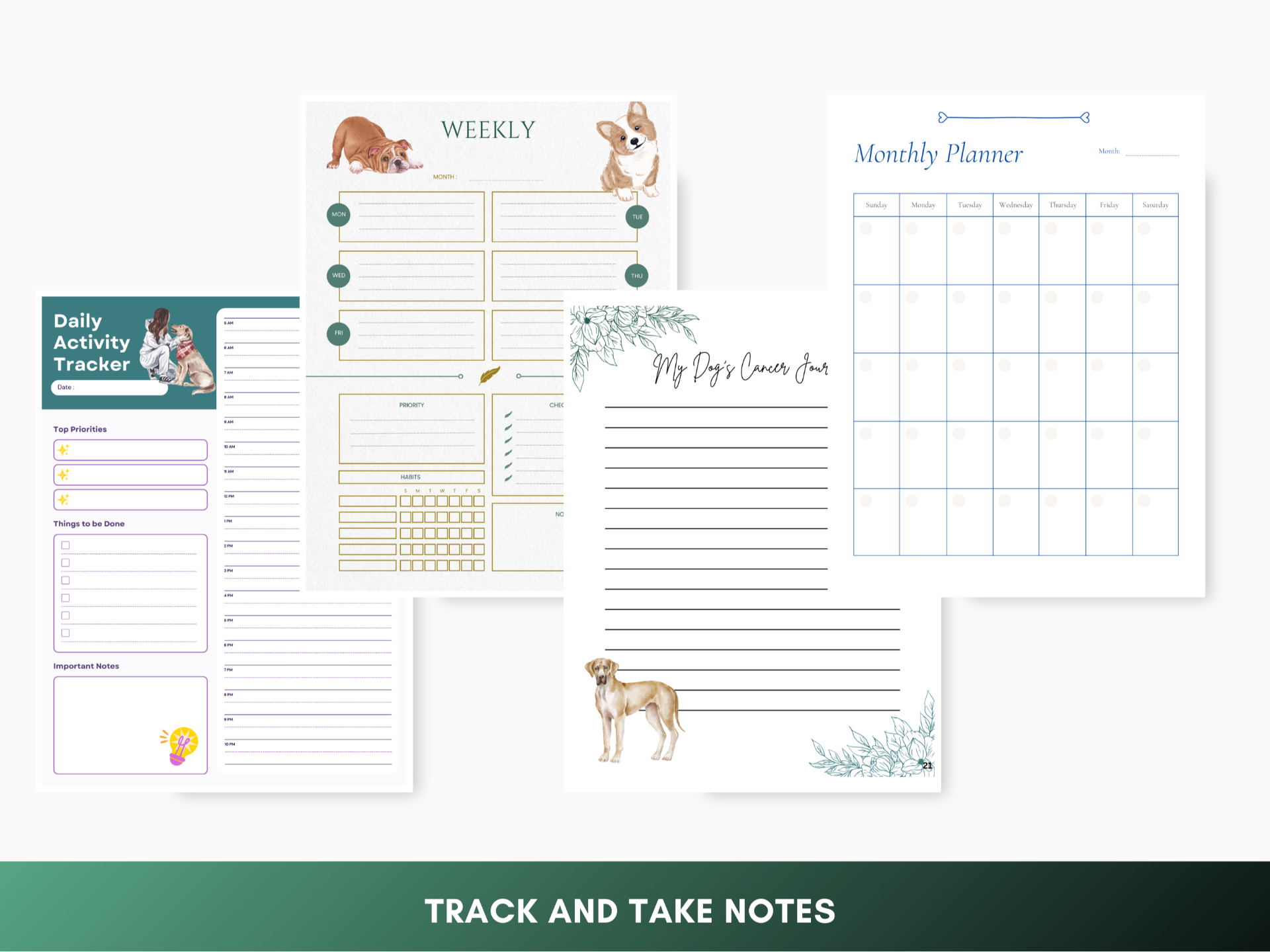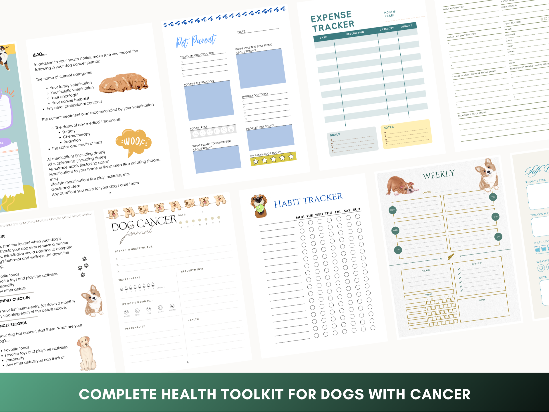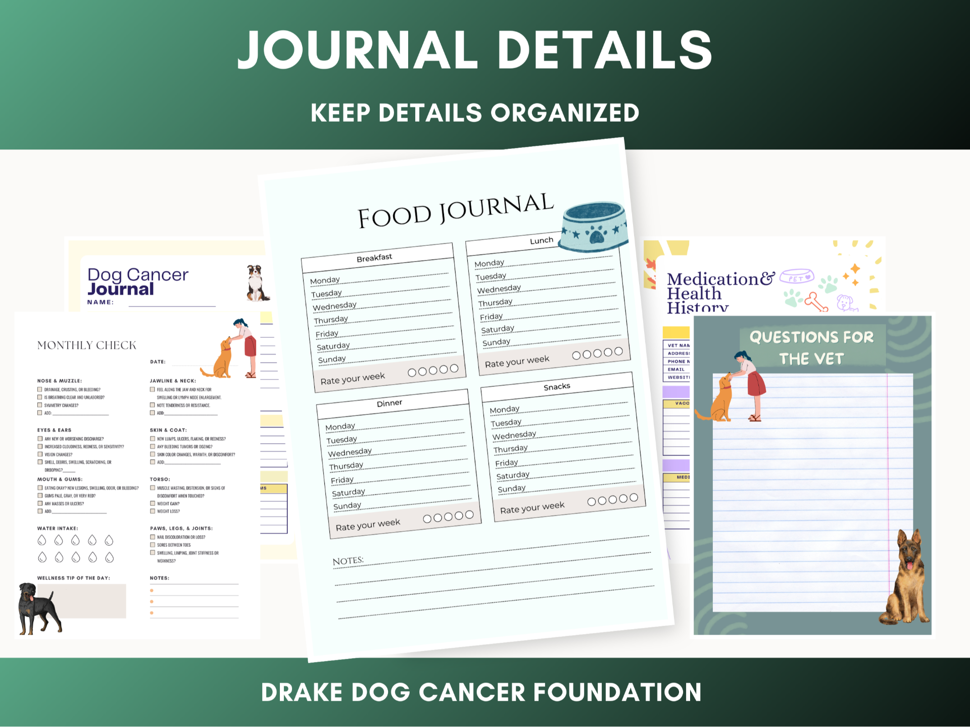 Thoughtfully crafted for pet parents, this journal offers gentle structure and emotional space to document vet visits, monitor symptoms, celebrate progress, and capture meaningful moments. Whether you're just beginning this journey or deep in the treatment process, the Dog Cancer Journal brings clarity, comfort, and connection when you need it most.